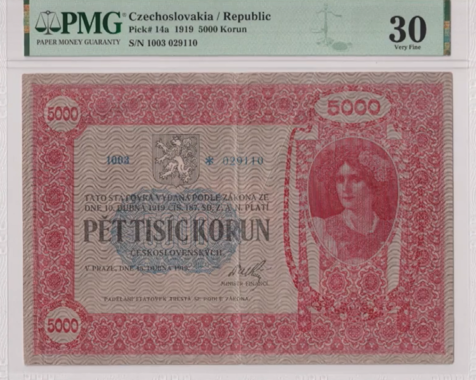 Minulý týden jsme se dozvěděli, že se bude dražit nejvzácnější platidlo z období 1. republiky. Jedná se o státovku z roku 1919 s vyvolávací cenou 2,5 milionu Kč. Nabízený exemplář je totiž jedním z pouhých dvou známých kousků, jimž chybí perforace, která znehodnocovala vzorky uložené v trezorech bank. Jakou nominální hodnotu má tato státovka?