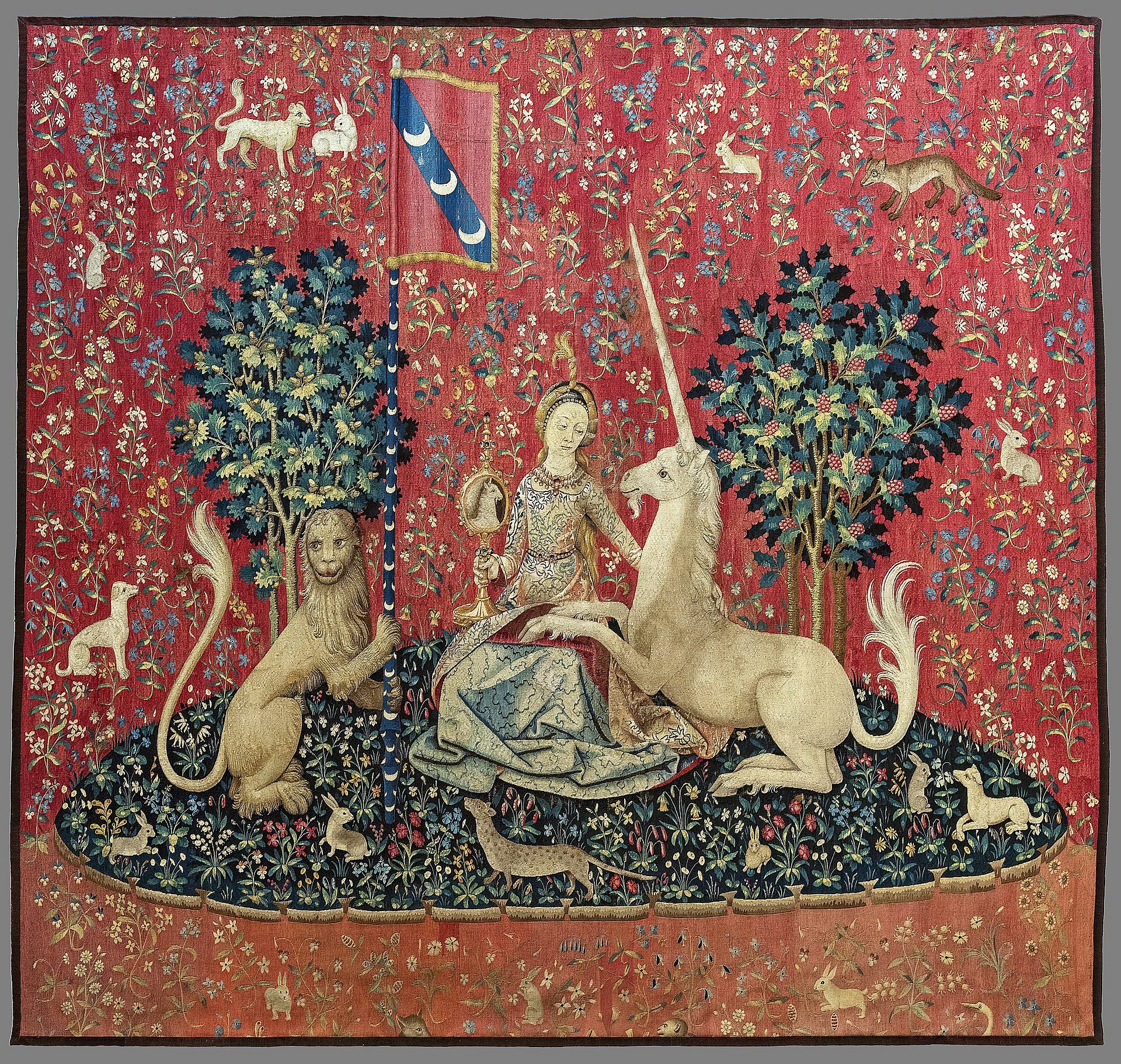 Dáma a jednorožec je série tapisérií vystavených ve Francii. Jednotlivé tapisérie se jmenují Čich, Hmat, Chuť, Sluch a Zrak. Kterou z těchto pěti vidíte níže?