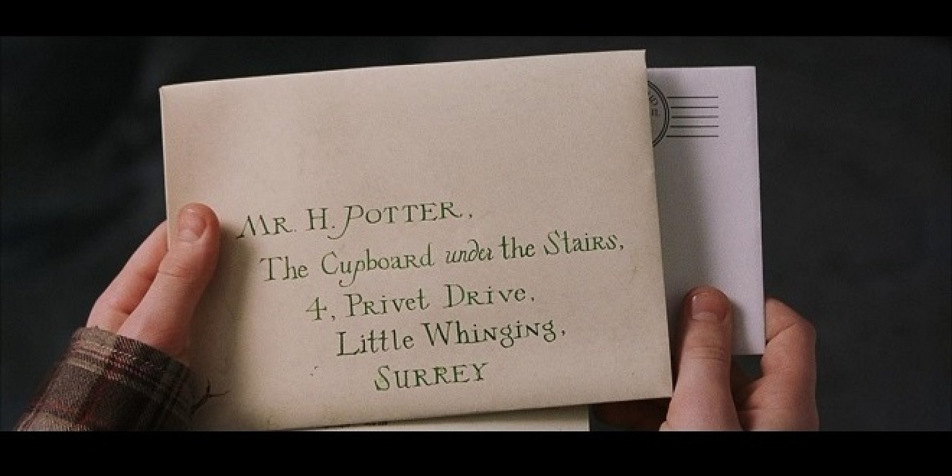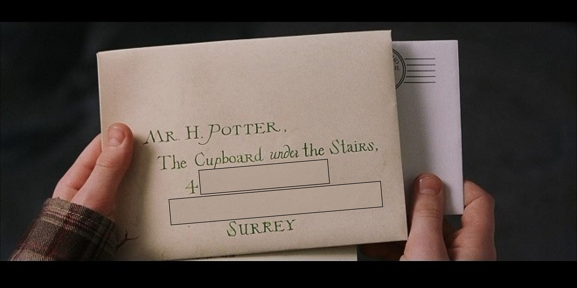 Doplňte adresu prvního dopisu, který Harry dostal z Bradavic. Chybí v něm název ulice a městečka, v němž Dursleyovi bydlí. Každý správný údaj za polovinu bodu.