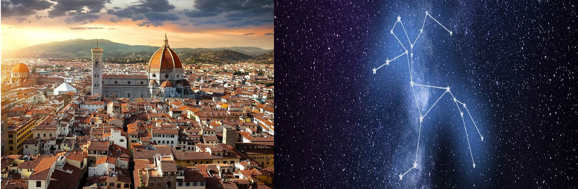 (Kentaur Firenze Harryho při jeho první cestě do Zapovězeného lesa zachránil před Voldemortem, a později v Bradavicích učil jasnovidectví. Na obrázku je pohled na Florencii a souhvězdí kentaura.)