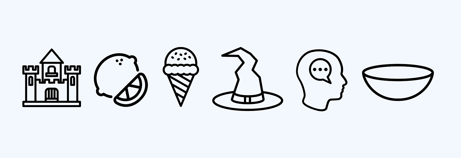 (Hrad, citrónová zmrzlina jako jedno z hesel, moudrý klobouk, který je zde uložen, stejně tak i myslánka.)