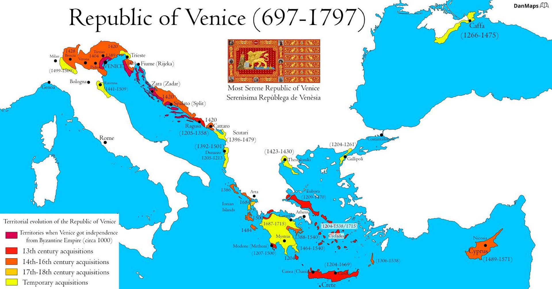 Tato republika existovala poměrně dlouho: mezi lety 697–1797, a jednu z verzí jejího znaku vidíme zde. Ve kterém jihoevropském městě (a jeho přilehlém okolí) tato republika sídlila?