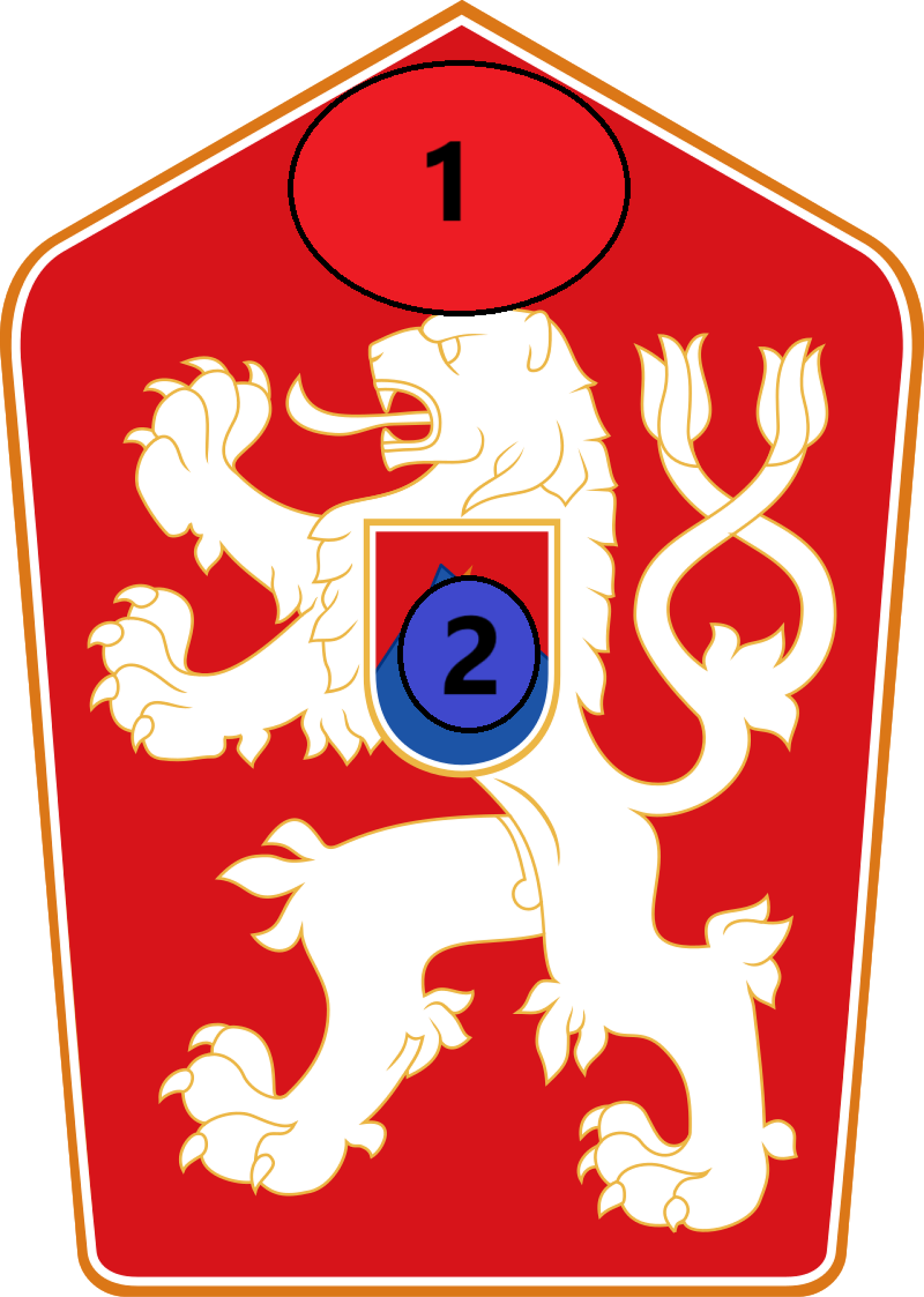 Mezi lety 1960–1990 užívala tehdejší Československá socialistická republika tento znak. Který objekt je zakryt oválem s číslem 1 a co bylo s modrou horou v pozadí vyobrazeno pod číslem 2. Každá správná odpověď znamená půl bodu.