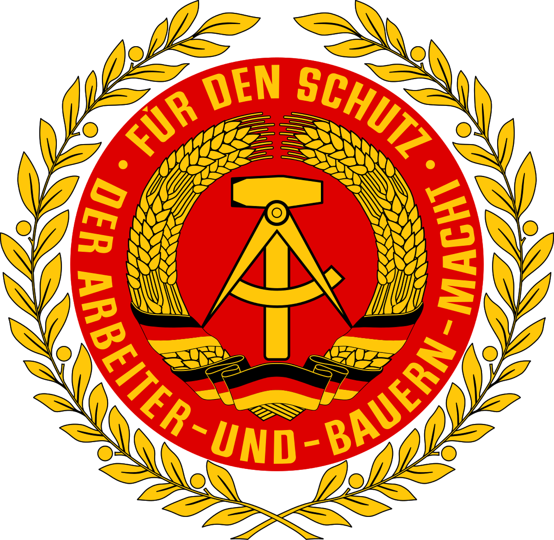 Německá demokratická republika existovala mezi lety 1949–1990. Na jejím státním znaku byly na červeném poli vyobrazeny tyto tři heraldické figury: A) srp, kladivo a hvězda; B) chmel, orlice a hvězda C) kružítko, kladivo a obilné snopy D) psí hlava, srp a obilné snopy