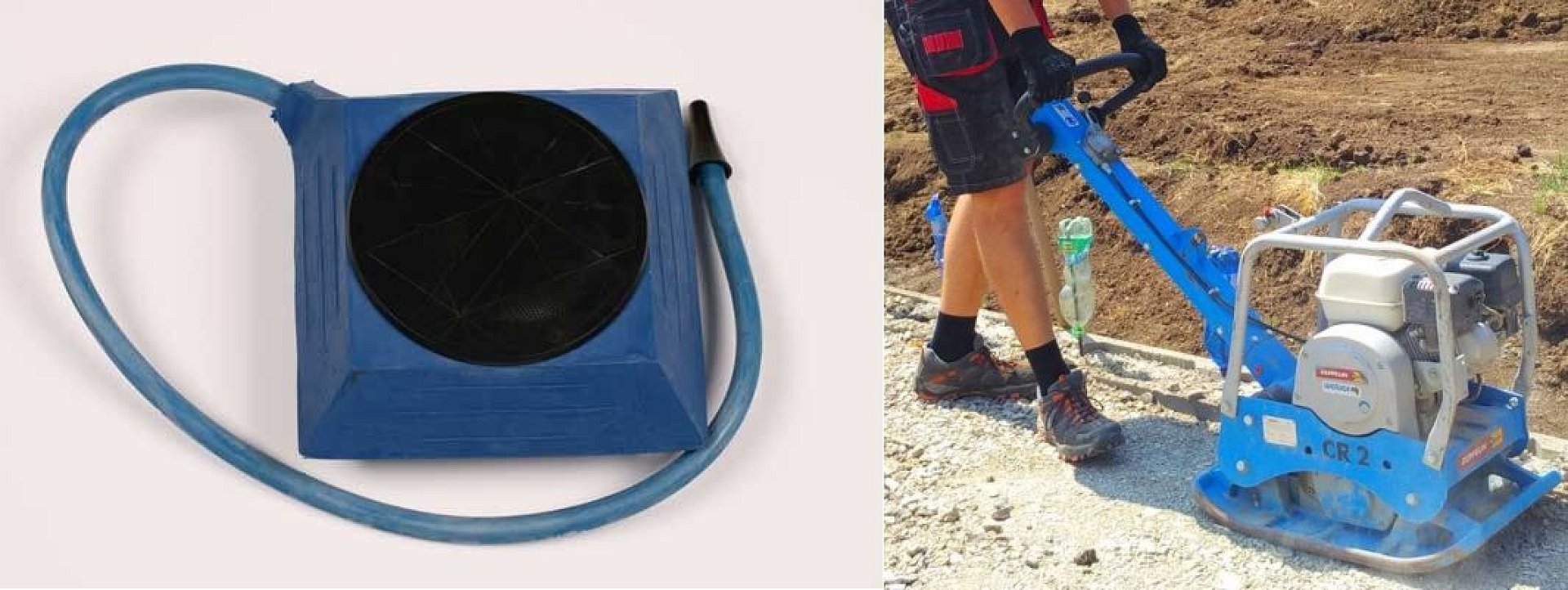 (vlevo je šlapací nafukovadlo, vpravo vibrační deska)