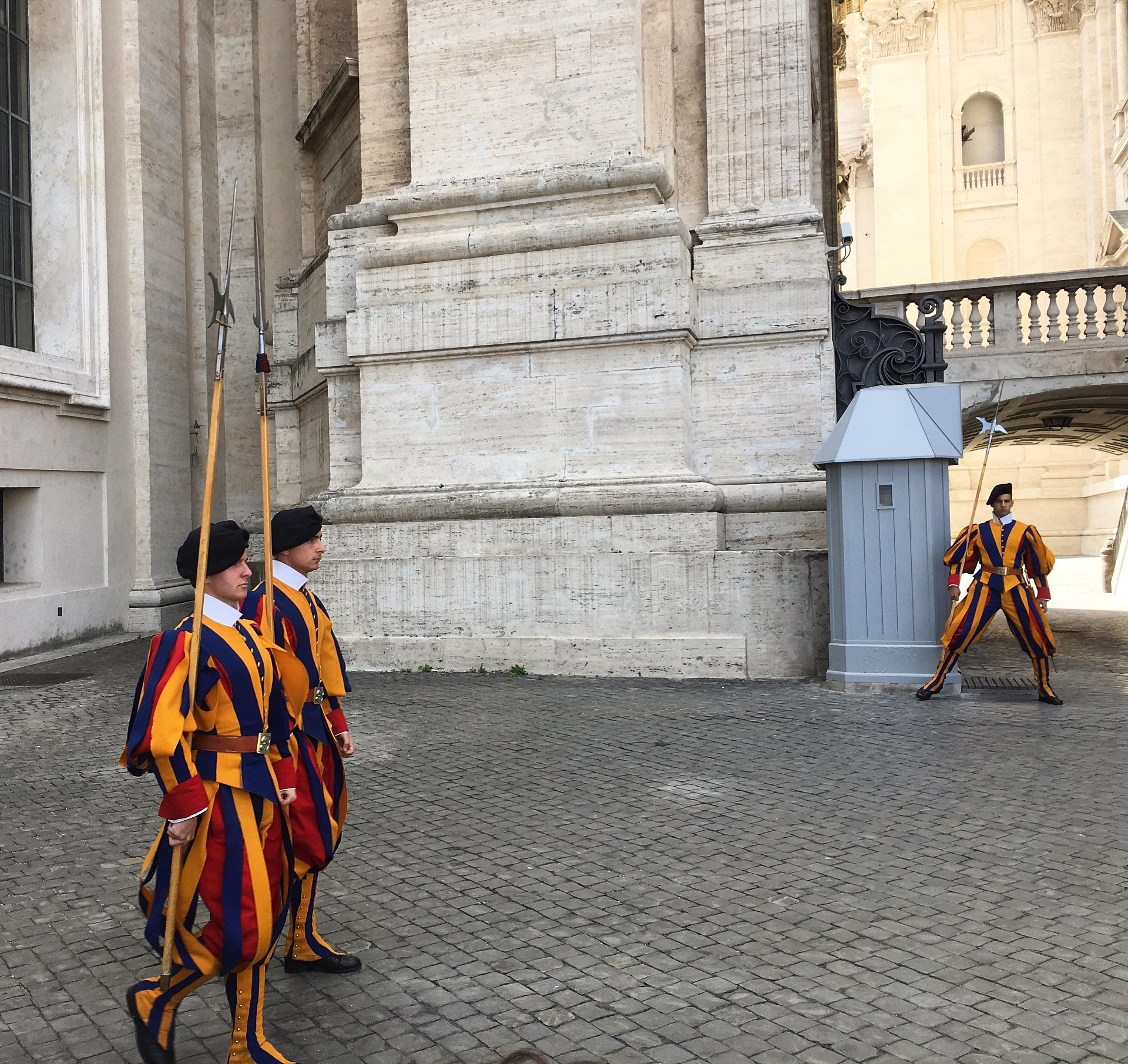 Některé středověké zbraně nacházejí využití i v dnešní době. Jak se nazývá dlouhá zbraň na fotografii, která tvoří tradiční výbavu papežské švýcarské gardy?