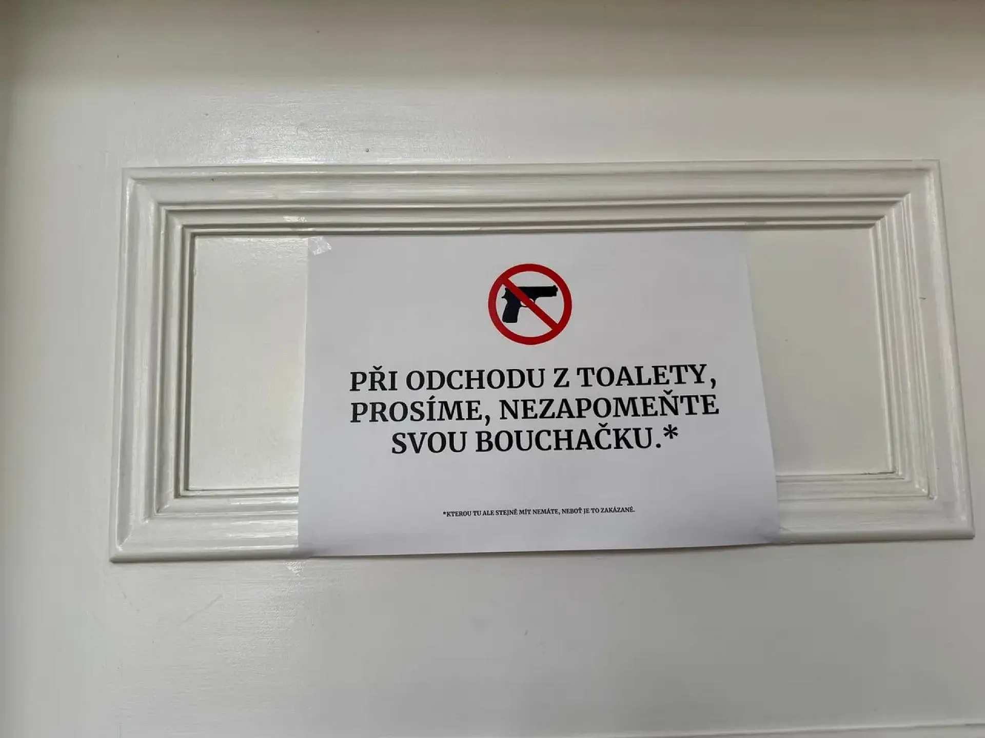 (Od středy visí na dveřích toalet ve sněmovně toto upozornění.)