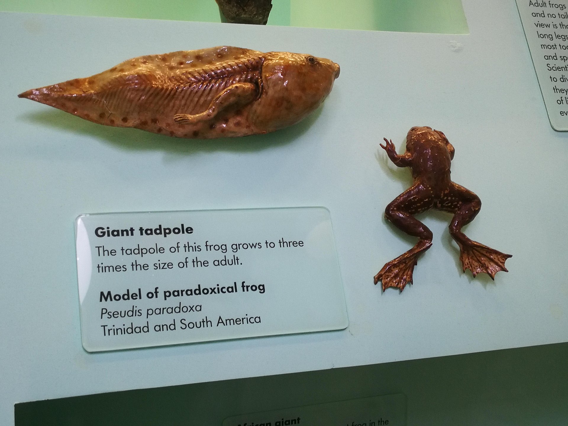 Žába rosnička podivná (Pseudis paradoxa) získala své druhové jméno na základě jedné zvláštnosti týkající se jejího života. Čím se odlišuje od většiny druhů žab? A) vajíčka klade do slané vody B) pulec je větší než dospělá žába C) je striktní hermafrodit D) nekváká, napodobuje zvuky ptáků