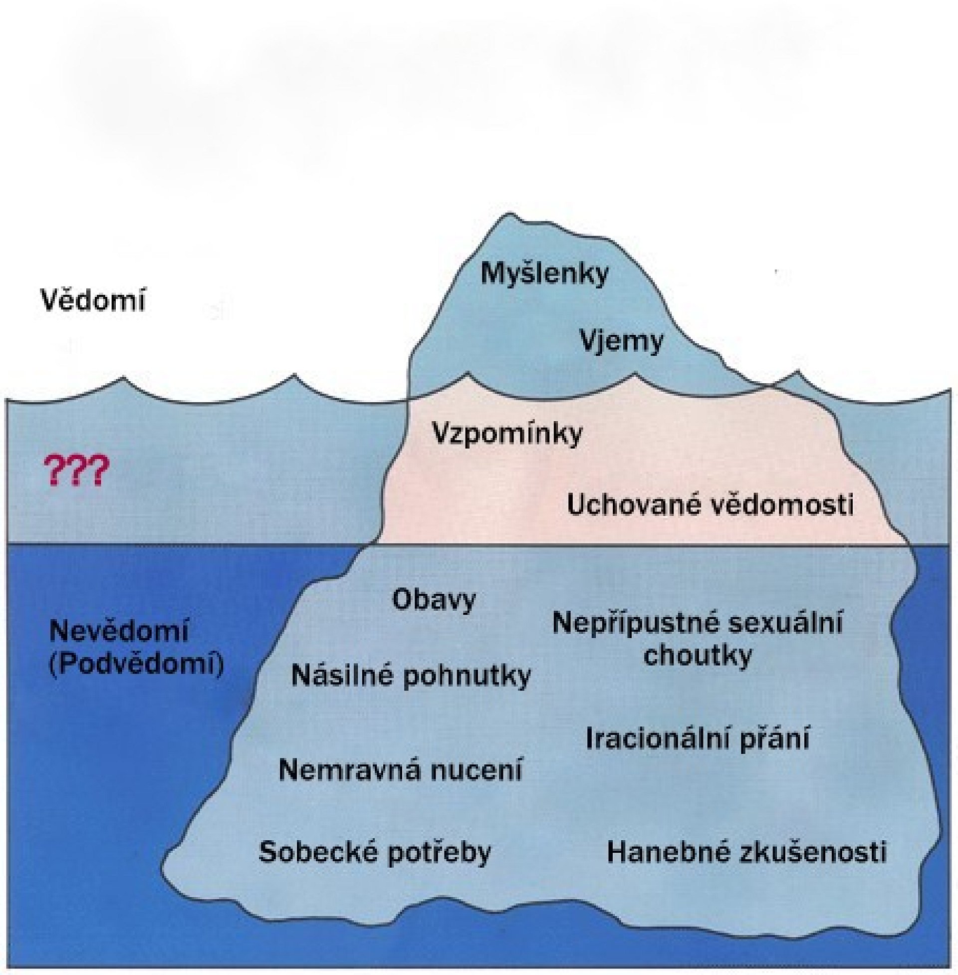 Metafora ledovce znázorňuje v psychoanalýze topografický model osobnosti. Vychází z tvrzení, že naše JÁ není pouze vědomé, ale dělí se na tři složky. Jak se slovem na 10 písmen nazývá prostřední část ledovce zahrnující myšlenky a zážitky, které si člověk dříve plně uvědomoval, ale pak je zapomněl, avšak může si je bez větších problémů vybavit?
