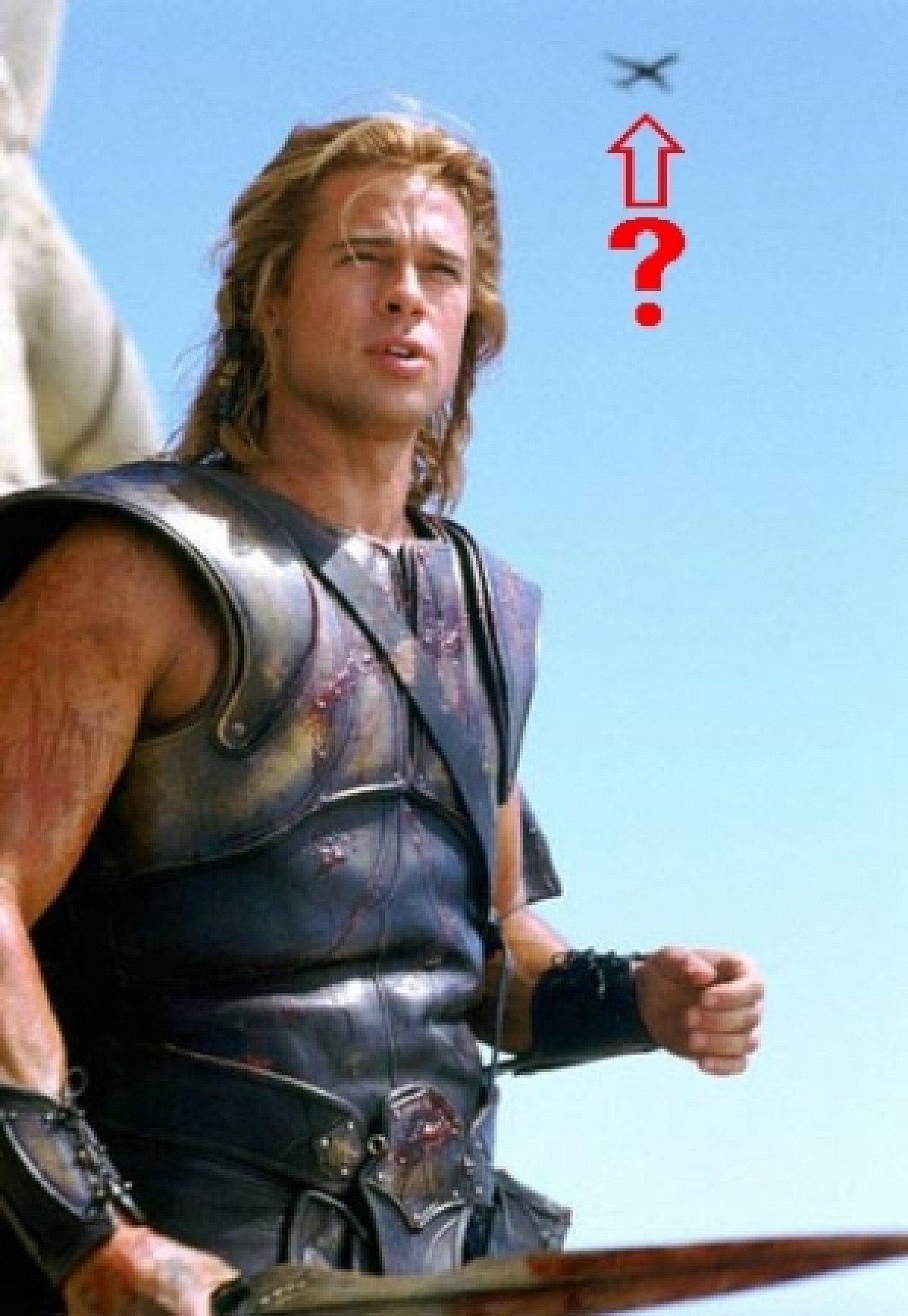 Vítězné téma facebookového hlasování začneme u jedné z nejznámějších filmových chyb všech dob, která se ale nikdy nestala. Možná jste i vy četli o tom, že v jedné scéně velkofilmu z roku 2004 mělo za hlavní postavou proletět na obloze letadlo. To se ale ve filmu nestalo, jedná se o photoshopový výtvor. Ke kterému snímku se váže tato internetová báchorka?
