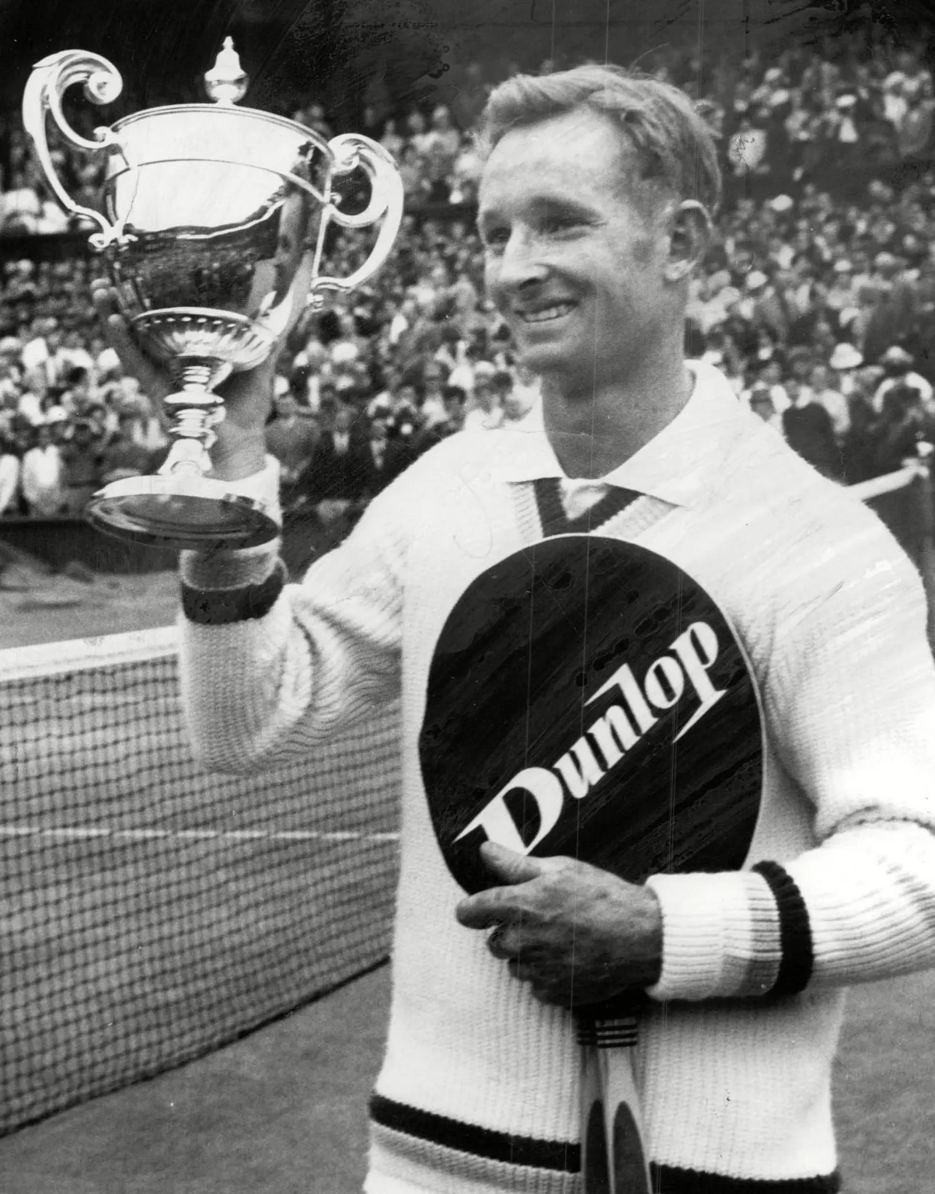 Dvěma tenistům se dosud podařilo získat Grand Slam, tedy zvítězit na všech čtyřech nejvýznamnějších turnajích v průběhu jednoho roku. Prvním byl Don Budge v meziválečném období. Napište jméno toho druhého, které nese mimo jiné hlavní kurt areálu v Melbourne nebo pohár tenisových družstev.